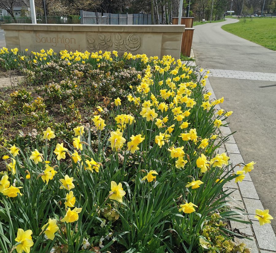 Nancy Bryson (@nancy.bryson2) snapped these wee ones “social distancing dog style” in Muiriston Park, featuring (L-R) wee Gordie, Titan, Reni, and Rosy! Richard Waugh (@RichieRichJTS) took this striking photo of Dalry Cemetery gate-lodge whilst walking to the shops during the lockdown.Lauren (@laurenjs164) sent us this cheery snap of the daffodils in bloom in Saughton Park (above) and one of the many colourful signs that residents put in their windows around Coxfield (below).Gorgie/Dalry Community Park in Bloom: our very own Vice-Chair Rona Brown (@rona.brown.7547) sent us an update on how the roses were getting on in the park at Dalry Road.GDCC Community Councillor Laura Wise (@auttonwise) took this picture of the Caledonian Brewery and the Wardlaws basking in the sun during one of her lockdown walks.GDCC Treasurer Alex McKendrick (sent in via email) took these beautiful photos of North Merchiston Cemetery in the sunshine.GDCC Engagement Officer Mathew Reilly (sent via email) took this photo of the Greenway on Wardlaw Place at 12pm on a Wednesday during lockdown, showing a distinct lack of cars. Usually, these spaces were constantly full of people parking here to visit the shops / grab lunch. There was a noticeable lack of noise and pollution; very refreshing.GDCC Engagement Officer Mathew Reilly (sent via email) showing a deserted Slateford Road, almost completely free of traffic at the beginning of April.