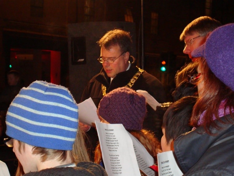 It seems there isn’t going to be a Gorgie Dalry Christmas Light Switch on this year. I hope we can have one next year but since it would have been my last as compere and local Councillor I can’t help but feel sad. I also can’t help but reminisce on all the past switch ons. I have put some pics on this newsletter. people doing the switch on itself has ranged from The Snow Queen (88) from the Kings Theatre, and Hearts players to most recently young winners of the poster competition and the Best Dressed Window. I was there in a few roles , Lord Provost and of course the big one who arrives in a sleigh! I will miss it.