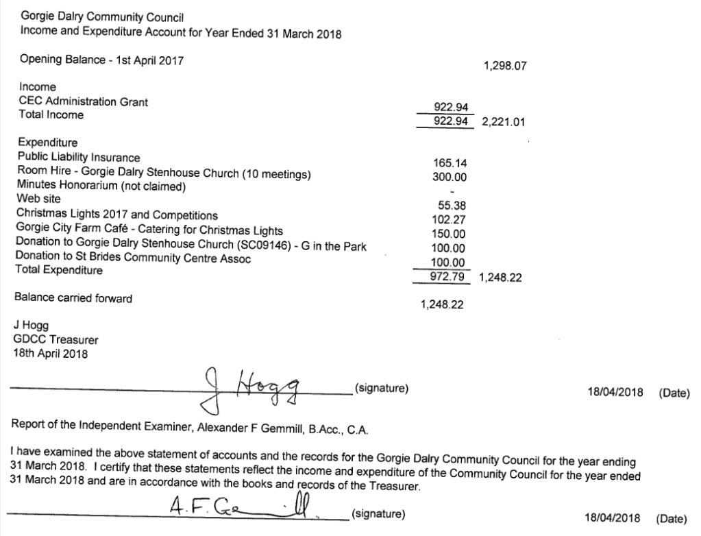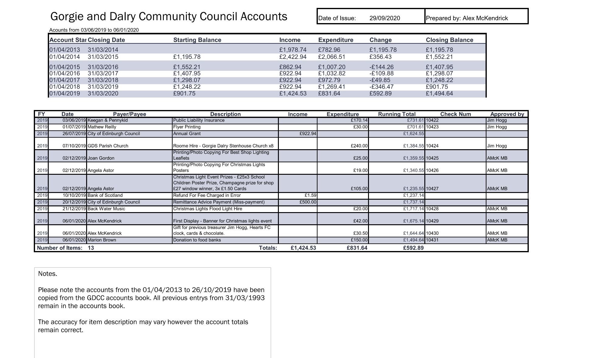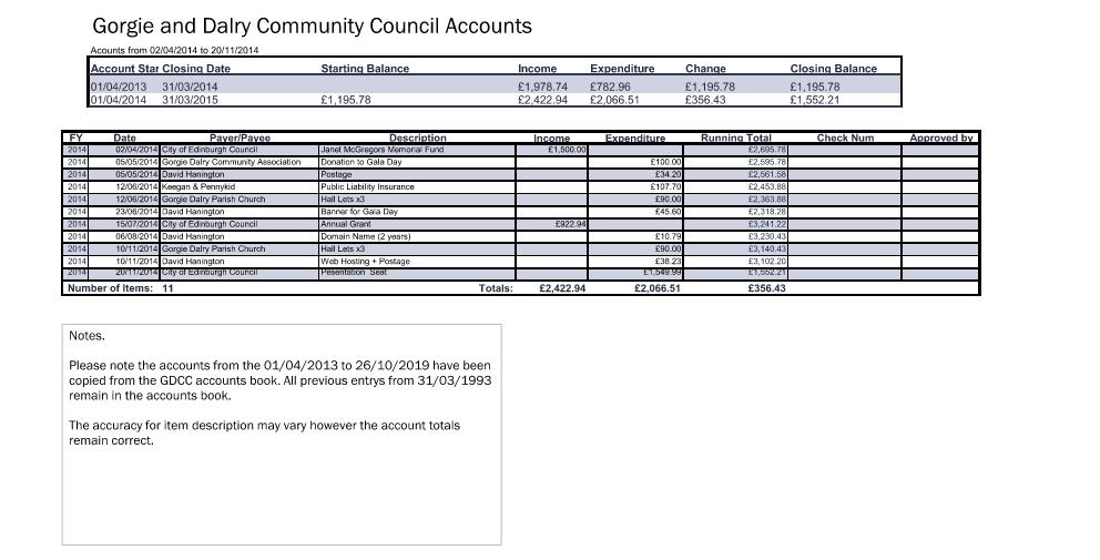 Community Council Accounts from 2013
